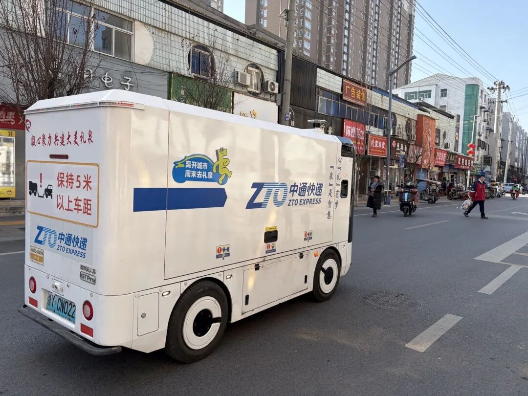 在礼泉城区的街道和乡村的小道上,印有中通、圆通、申通等标识的无人配送车成了一道独特的风景线。